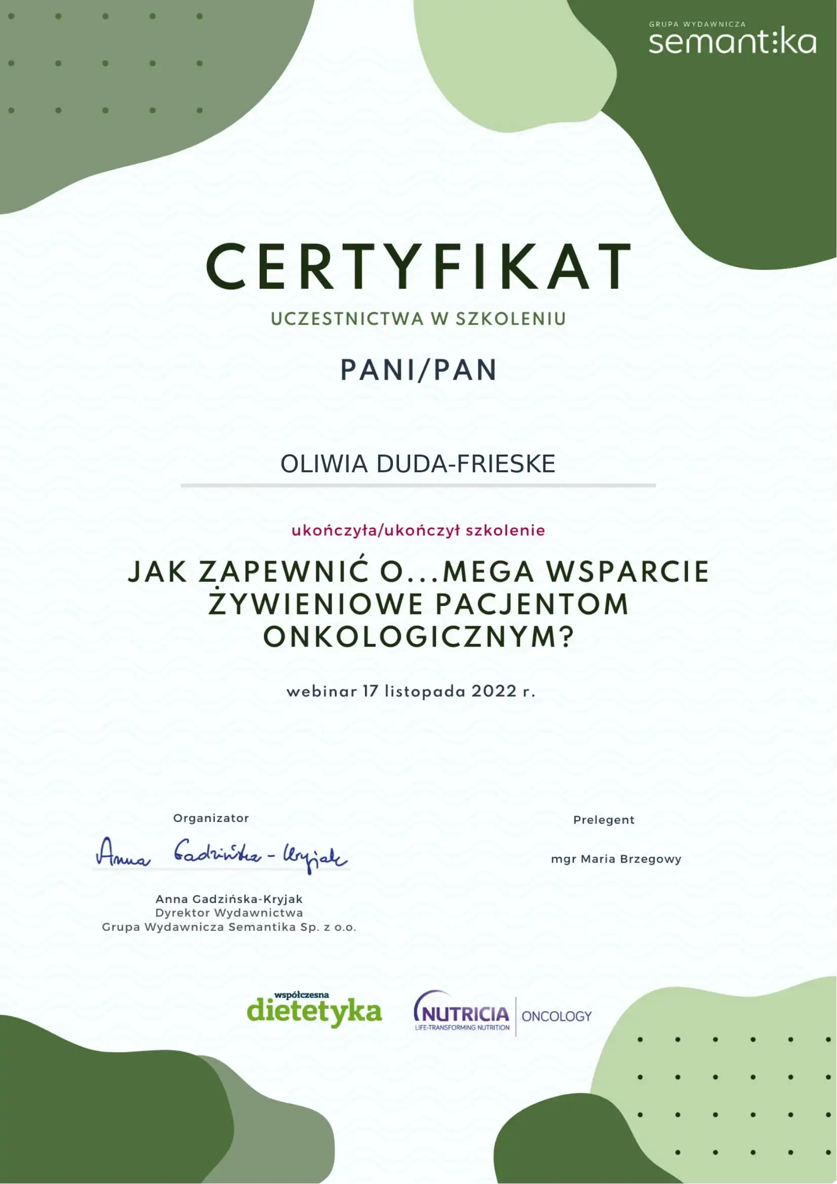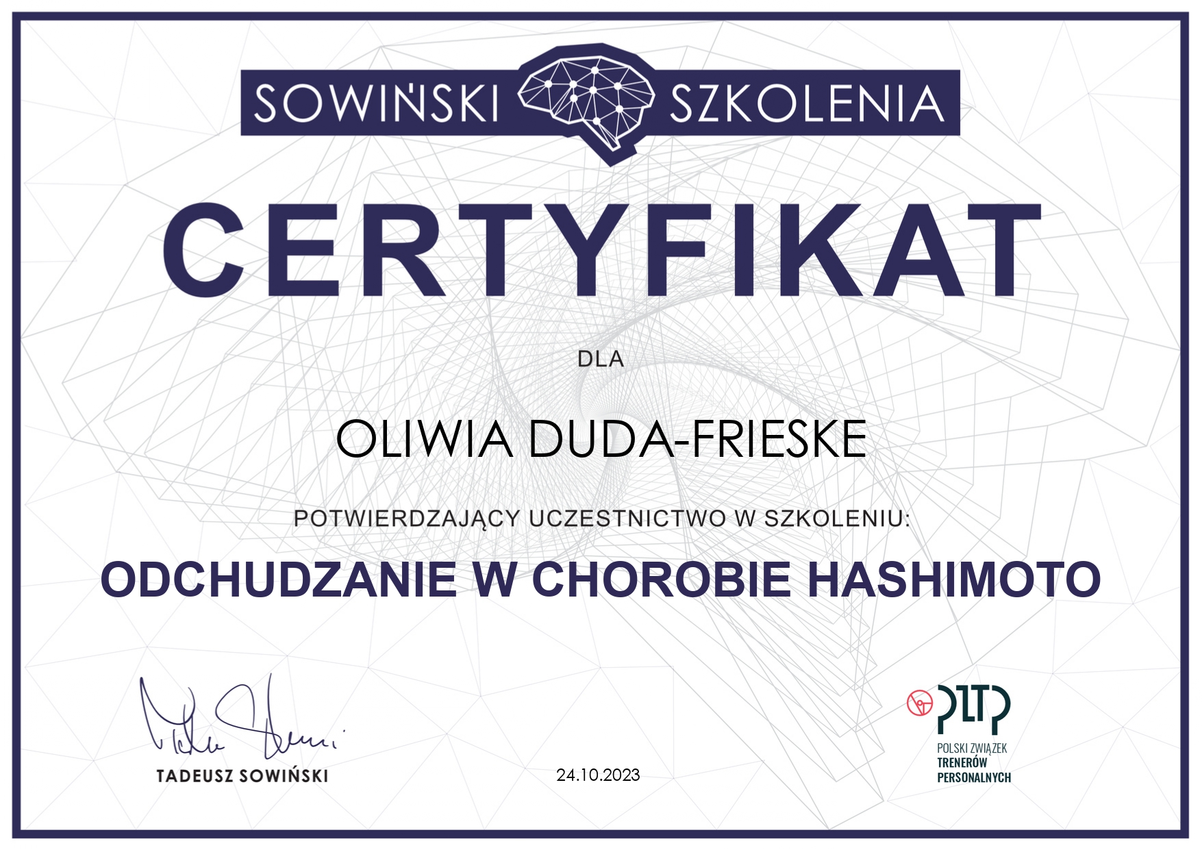 Wybrane szkolenia, które rozwijają mój warsztat i wspierają pracę z pacjentami.
