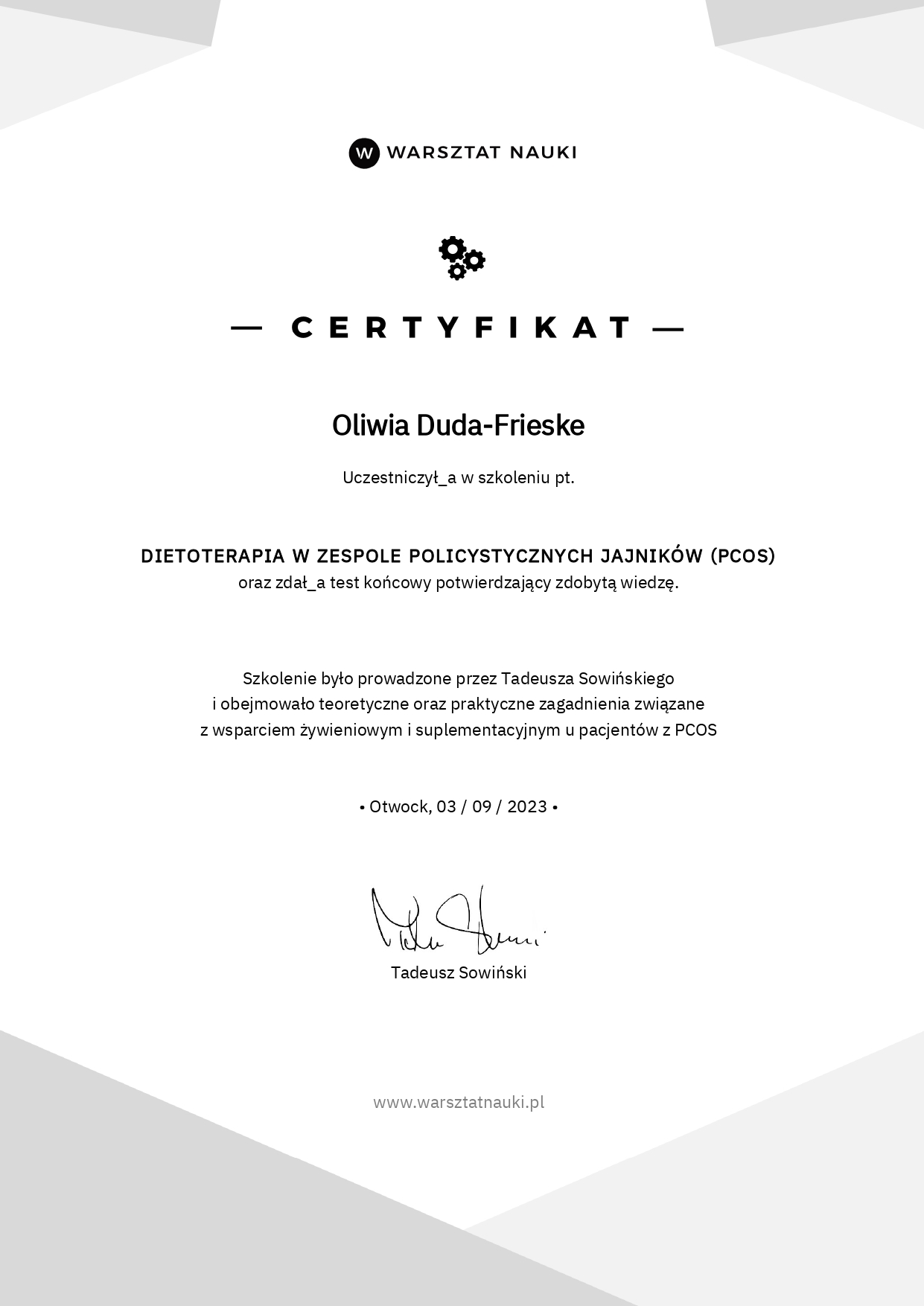 Wybrane szkolenia, które rozwijają mój warsztat i wspierają pracę z pacjentami.